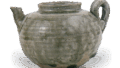 鎌倉末期の古瀬戸最盛期の小形水注の一つです。素地は黄白色「のざんぐりした土で、水挽き成形です。肩に目線を施しています。鉄釉は全面に厚くかかり、赤茶色の飴釉で、黒縞の多い不均一な調をしています。