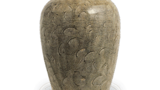 瀬戸 鉄釉印花文花瓶 中世瀬戸美濃瀬戸 鉄釉印花文花瓶 X Facebook はてブ LINE Pinterest コピー 2023.11.27 瀬戸 鉄釉印花文花瓶 Seto ware: flower vase with stamped ornament, iron glaze. 14th century. Height 19.5cm.14世紀高さ19.5cm 口径6.0cm 胴径9.0cm 底径6.1cm 口縁部を補修していますが、通有な仏花瓶です。変化に乏しいもので、中央の印花文がわずかに引き立て役となっています。文様は牡丹唐草文をらしたものです。薬は灰分が多くて一見灰釉のようにみえますが、青黒い鉄釉の一種です。