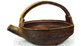 尊式仏花瓶は室町時代の花瓶を代表する主要な器形ですが、その最古の形態を示す好資料です。扁平な小さい胴の上に大きく開口頭部、低い張りのつよい台脚の構成は文様より形の美しさを求めたものといえるでしょう。なめらかな灰釉の色調が、形の美と相俟って、室町様式とも呼ぶべきあたらしい形式美を生み出しています。