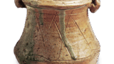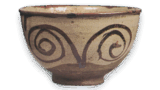 大振りの馬上盃に作られたか、 茶碗であったかは判然としないか瀟洒なうちにも唐津らしい素朴さが生きている茶碗です。 すんなりと開いた口部は一部土が切れ、 高く立ち上がった高台の畳付は平らで糸底になり、赤い土膚を見せています。 釉膚はやわらかく美しい枇杷色に焼き上がっています。