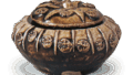 Seto ware: covered jar with stamped ornament, iron glaze. 14th century. Height 6.0cm.