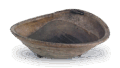 赤津の檜窯出土と伝えます。腰が直線的で口頭の垂直に立ち上がる深目ので、くびれの段のあまり目立たない形をしています。白色のやや荒目の土で、底部は削り出し高台です。高台脇が削り出しによって段をなすのが特色です。裏は内する、いわゆる椎茸高台です。釉はかなり進歩した古瀬戸軸で、半光沢の下にゆくほど黒褐色のつよい軸調をしています。