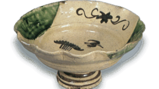 灰釉小皿は灰釉碗とセットになって用いられたものであり、鎌倉後期から室町中期までは山茶碗の小皿とよく似た平凡な形の小皿です。いずれも底に糸切痕を残しており、灰釉は内面のみにかけられています。この小皿類は白色の良質の土を用いて焼かれており、灰袖は内面のみに刷毛で塗られています。焼き上がり良く、淡緑色の美しい色調を呈します。