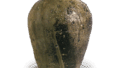 Tokoname ware: jar with three horizontal grooves. Excavated on the ruins of Hakusan Jinja, Atsugi-shi, Kanagawa. 12th century. Height 23.0cm.