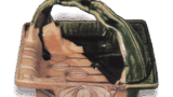 黒唐津 茶碗 唐津黒唐津 茶碗 2013.11.162024.01.25 黒唐津 茶碗 高さ8.2cm 口径12.5cm 高台径4.6cm 祥古谷の黒唐津で、これも口部を押えて歪みをつけています。 腰はまるく、 胴を締め、 高台は低く削り出され、 黒釉の上にかけた長石釉が厚く、 全面蛇蝎風になっています。 釉膚もやわらかこの手の茶碗としては優作です。