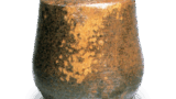 大杉谷の一経塚から影青の合子を伴って出土したもので、典型的な初期常滑の経甕の一つです。本来実用の器であったこの種の中形甕は経筒外容器として各地で用いられており、製作の優れたものが多いです。本器は惜しくも口縁の一部を書いているが端正な姿をしており、赤褐色の器肌に青黒い灰釉が流下し、いかにも初期常滑の雰囲気を醸し出しています。