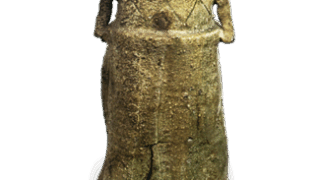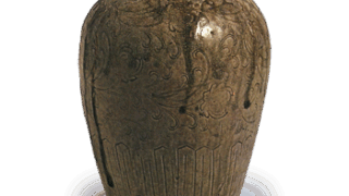 Atsumi ware: covered jar for containing sutra case. Excavated from Hanase No. 2 Sutra Mound, Hanase Bessho-chō, Kyoto-shi, Kyoto. 12th century.Height 34.2cm. Tokyo National Museum.