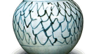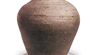 伊勢・熊野地方の経塚から常滑三筋壺とともに渥美刻文壺や本器のような小形壺がしばしば発見されています。広口の肩の張った胴形からみて、12世紀代の作であることが知られます。肩に太い箟描きでDを彫りつけています。肩に刷毛塗りによる灰釉が施されており、よく熔けている部分は黒色を呈しています。