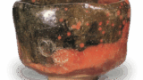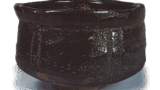 長石釉が生がけされ、酸化炎焼成により、長石釉が赤味をおびた灰鼠色に発色し、内側各所に御本風の赤い発色がみられます。