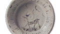 絵唐津 胆馨 草文 大鉢 唐津絵唐津 胆馨 草文 大鉢 X Facebook はてブ LINE Pinterest コピー 2013.12.142024.01.25 絵唐津 胆馨 草文 大鉢 高さ14.5cm 口径30.5cm 底径10.2cm 朝顔形に開いた大振りの鉢で、 内外に唐草風の文様を胆礬であらわしています。これも珍しいものですが、 製作年代はやや降るのではないでしょうか。 椎の峰窯の作と推測されています。 見込に目跡が七つ残っています。