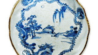 そして薄い口縁部に鉄砂で線どりを付ける、いわゆる皮鯨とし、幅広の斜線には櫛目のような細い筋を描き、見込にひょろりとした感じの沢潟文を描き付けています。
