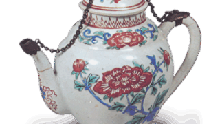 開いた口部を楕円にした鉢で、四方を摘んでいます。 見込には水草の文様を、 口まわりには筋文様をいかにもすっきりと細くかろやかに描いています。 絵唐津の鉢のなかでも稀に見る瀟洒な作振りで、 高台は厚く片薄に削り出され、 釉膚は滑らかに溶けています。 多久高麗谷窯の作でしょうか。