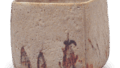 絵唐津 草文 筒向付 唐津絵唐津 草文 筒向付 X Facebook はてブ LINE Pinterest コピー 2014.01.102024.01.25 絵唐津 草文 筒向付 高さ9.5cm 口径10.0cm 底径5.5cm梅沢記念館 やや薄手に轆轤びきされた筒向付で、 口部の三方を押えて州浜形にしています。高台は開き気味にしっかりと削り出されていて、 内田皿屋窯独特の作振りです。 胴の一方には秋草を、 一方には蔓草のような文様をなよやかに描いています。 釉はよく溶けて青みをおびた灰色に焼き上がり、 全体に貫入があらわれています。 大振りですので、今は火入に用いられています。