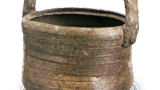 絵唐津 蓮葉形 向付 唐津絵唐津 蓮葉形 向付 2014.01.162024.01.25 絵唐津 蓮葉形 向付 絵唐津 蓮葉形 向付 高さ5.9cm 口径13.8×16.3cm 底径4.9cm 口部を端反りにしたやや浅い向付で、 器形全体を蓮葉に見立てて、見込いっぱいに葉脈をあらわした、まことに瀟洒な作振りの小鉢です。高台は小振りに削り出され、 赤い土膚はよく締まっています。多久高麗窯から類似の破片が出土しています。