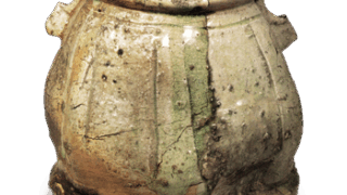 Suzu ware: jar with beaten surface. Excavated at Kokufu-machi, Gifu. 14th century. Height 34.0cm. Honda Collection.
