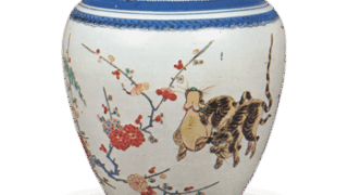 頸がややしまって、口頸部が外開きに立ち上がるとともに肩の張りはなくなり、球形にちかい胴形をしています。紐土づくり巻き上げ成形で、底部をつくり、上へ接ぎ足してゆく珠洲の成形手法をとっています。器面は条線状刻文のある叩具を縦に用いて、多面体様のつくりをみせていますが、まだ叩文が斜め一方向に流れていて、鎌倉時代にその年代をおくべきでしょう。肩に菊文の押印が二個あります。