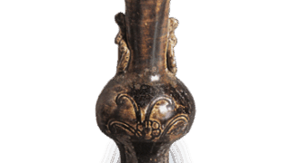 高さ39.7cm 口径18.2cm 胴径30.8cm 底径12.4cm 天王寺承安元年(1171) 銘経筒とともに天王寺経塚から出土したもので、やはり毘沙門平窯の製品でしょう。年代の知りうる基準資料として貴重なものです。砂粒を含んだ粗質の土ですが、紐土巻き上げ成形、器面刷毛目調整によって薄手の精巧なつくりを示しています。