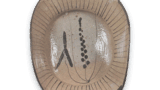 これらはいわゆる蹲よりも小さく、縄目文のあるものはありません。この小壺はわずかに外反する口頸部の端を外へ折りまげ、口縁端はかすかに二重口の痕跡を残しています。長石の少ない土を用いた紐土づくりの成形で、形はいびつです。非常によく焼き締まっており、赤い肌に白ごまふりの自然降灰がある。胴に箟描きで、根をはった樹木とへ状の刻文がありますが、古信楽に樹文のあるものは珍しいです。これも各地の中世陶器にみられる樹文の影響を受けたものとみられます。