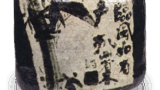信楽 壺 中世信楽備前丹波信楽 壺 2024.01.122024.01.13 信楽 壺 Shigaraki ware: jar. 15th century. Height 20.5cm.15世紀高さ20.5cm 口径7.4cm 胴径17.5cm 底径12.5cm 蹲と呼ばれる小壺の一種ですが、器面全体が真赤に発色し、肩に薄く黄緑色の自然釉がかぶっていて、なかなか見ごたえのする壺です。紐土巻き上げ成形、胴下半は箟削り成形で、肩に箟で太く縄目文を刻んでいます。また上に一箇所、細い箟描きで、三の印を刻んでいます。口頸部は胴径に対して比較的小さく直立し、いわゆる二重口です。