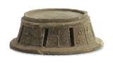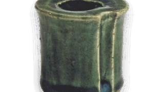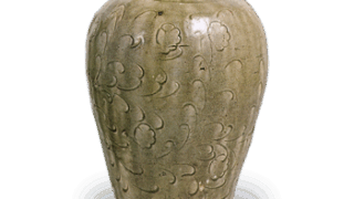 細くしまって直立する口頸の先端を明瞭に玉縁につくっており、卵型の胴をしたこの壺の形からみて、15世紀末ごろの作かと考えられます。底裏に突出した下駄印がある。焼き上がりは良好で半面は薄赤色、半面は黒く焼きムラがでており、肩の半面に黄緑色の自然釉がかかって変化に富んだ色調を呈しています。