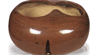 高さと胴径のまったく等しい丸胴の甕です。常滑系の小甕ですが、口縁はN字状にひねり返されることなく、段をつくってさらに上方へ厚く引き上げられて、幅広い縁帯をつくっています。この口縁のつくりや胴の形からみて、常滑的なものから脱却した、信楽独自の甕の形態といえるかも知れません。底裏に下駄印がある。