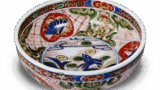 口頸部のしまった丹波長壺の最古の形態のもので、稲荷山古窯の製品でしょう。同窯から同形の破片がかなり発見されています。紐土巻き上げの胴部四段はぎづくりで、器面は刷毛を横に用いて調整しています。焼き上がりはきわめてよく、器面は茶褐色を呈し、肩にかかった鮮緑の自然釉が滝のように胴下半にまで流下し、すばらしい出来ばえです。