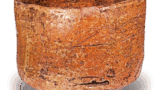 丹波の大壺には長壺と肩の張った丸胴壺とがありますが、この壺は後者の例であり、類品には桐文大壺や秋草文壺がある。紐土巻き上げの胴部四段はぎづくりで、器面は俺で平滑に調整しています。いわゆある反口の肩の張った形態で南北朝ごろの作でしょう。焼き上がりは良好で、茶褐色を呈する器肌の肩に濃緑釉がかかっています。