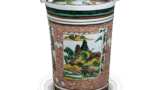 Flower vase with brushwood fence design, enamelled ware