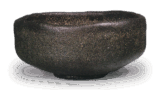 木瓜形の猪口で、五客揃っています。縁黒にし、胴には石畳風の文様を銹釉であらわし、高台を除いた全面に貫入のある釉をかけているが、釉膚にはほのかに赤みがあらわれています。高台内左方に 「岩倉」の印を捺しています。