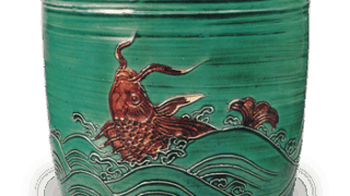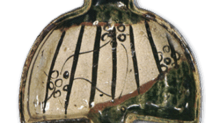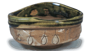 色絵梅水仙文角徳利 京焼色絵梅水仙文角徳利 X Facebook はてブ LINE Pinterest コピー 2024.02.21 色絵梅水仙文角徳利 Wine bottle with plum tree design, enamelled Mizoro wareHeight 23.4cm高さ23.4cm 口径1.4cm 胴径10.8cm 底径7.2cm すんなりとした鶴首形徳利で、首まわりや胴の梅文様の緑の上絵具は発色が濃厚です。文様も大まかなすっきりとした作行きで、高台に 「御菩薩」 の印が捺されています