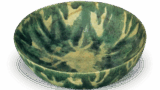 共箱の蓋表に「青花茶碗 木米造」 と書付されています。祥瑞写の煎茶碗で、胴の二方に丸紋を抜き、そのなかに山水と花鳥の文様をあらわし、地には紗綾形文様を染付の濃筆で描き、高台内に 「九々「鱗木米造」 の銘が書されています。