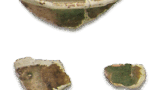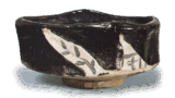 明末天啓年間に焼造された、古染付型物香合の一つである有馬筆を写したもので、木米茶陶中の傑作の一つに数えられています。共箱の蓋表に 「有馬筆香合」 底裏に 「陶於職古器観木米造」 と書していあります。蓋甲に立ち上がった筆の作振りはこまやかで可愛く、胴の二方に竹、二方に人物の文様が染付であらわされています。染付の色はや薄く、方形の高台は低く作られ、印銘は捺されていません