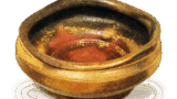 和蘭写唐花文煎茶壺 京焼古染付写五徳蓋置 2024.03.18 和蘭写唐花文煎茶壺 Mokubei: tea jar in the style of oranda (Dutch or European) ware with floral designHeight 8.5cm高さ8.5cm 口径3.5cm 底径6.3cm 胴を六稜の花形にした被せ蓋のついた煎茶壺で、やわらかい白釉がかかり、側面には花文様、裾に兎や牡丹風の花文様を内にあらわした蓮弁文がめぐらされています。他に例を見ない珍器であり、平ら底に 「古器観 木米造」 の彫銘があります。