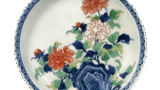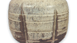 口縁に高低をつけた半筒形の茶碗で、高台は小さく引き締まり、高台内の削り込みは深く、中央に渦兜巾が立ち、見込に大きな茶溜りがあります。胴の二方に白釉で蝶をあらわし、釉下に染付で蝶の羽を細く線描きしています。共箱の蓋表には「蝶之絵 黒茶盤 仁阿弥印」と書き付けし、仁阿弥の方形印を捺しています。