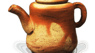 Ninnami: bowl with bail handle with snow-covered bamboo design, iron brown under glaze