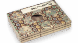 祥瑞写の小振りの茶碗です。口端をわずかに反らせ、ふっくらとした椀形で、高台を小さく削り出しています。高台は祥瑞風に段をつけて、釉を削り取り、畳付を土見せにしています。全体に描かれた染付は明るく発色し、内側見込から放射線状に松、竹、梅の樹を口縁までのばして描き、外側は保全と関係の深かった三井家の家紋を中心に六個の家紋を意匠化して散らし、地に籠目文を埋めています。