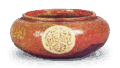 屋根を蓋にした葛屋の香合で、屋根には飴釉がかかり、身は赤楽に作られています。道入の釉がけとしては珍しいものですが、後に金沢で大樋の始める飴釉が、道入時代に楽家ですでに行なわれていたことを物語り、「虹」 (図59) にかけられている飴釉と同様のものです。底の四方に脚がつき、中央に楽字の印がくっきりと捺されています。内箱蓋裏には「のんかう くすや 香合左(花押)」 と了々斎が書き付けています。