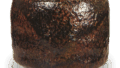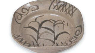 全体やや厚手で、腰が張り、口部は内に抱えています。胴には四か所に目が施され、その間にはくぼみが作られているなど、一入には珍しく作為的な茶碗です。腰下はまるみがあり、高台は小振りに引き締まって、高台内にはくっきりとした兜巾が削り出されています。総体にかかった釉は全体に朱釉があらわれ、ところどころに朱釉が斑文状にかたまっています。箱の蓋裏には「一入黒茶 曙 (花押)」と不見斎石翁が書き付けています。