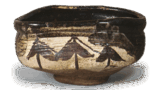 口縁をすぼめ、胴から腰にかけてまるみのある穏和な作振りの筒茶碗です。締まった高台は畳付狭く、平らに削った高台内に印を捺し、見込に削り出された茶溜りの横にも印を捺しています。全面にかけられた釉はよく溶けて得入らしい鮮やかな赤茶碗に焼き上がっています。蓋裏には了入の極め書。得入は身体が弱く三十歳で歿したために、弟の了入が後に極めているものが多いです。