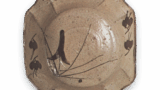 高台脇に赤茶碗 銘花摺衣と同じ拝領印の捺された茶碗ですが、赤茶碗 銘花摺衣に比して箟使いの多い作である。口部に高低をつけ、胴には幅広い麓をまわし、高台は小振りに締まって高台内には低く兜巾がつけられていあります。腰から高台にかけてはねっとりとした白い土が見られ、他は濃あい黄土の上に透明釉をかけていますが、火変りが外側にあらわれ鮮やかな景色をなしています。箱の底には旦入の書付があり、蓋裏には 「赤茶碗 旦入作 明暮ト号 精中 (花押)」 と玄々斎が書しています。