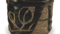 Keinyu: tea bowl with noshi (gift emblem) design, Black Raku