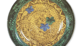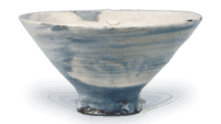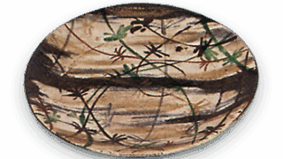 あたかも兜の鉢のような姿なので筋兜香合と呼ばれ、 織部香合中の白眉として名高いものであります。 身と蓋の合せ口と底部を除いた全面に緑釉を施し、蓋甲から身の側面にかけて八方に白い筋をつけています。 蓋甲には細い線彫りも施されています。 根津美術館の「黄瀬戸宝珠香合」 また 「志野万年青文一文字香合」 とともに桃山時代香合の三名器の一つに数えられます。