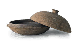 Oribe incense caddy with suji-kabuto (helmet in stripes) design