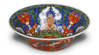 鍋島 青磁 色絵 藤豆文 皿 日本の陶滋鍋島 青磁 色絵 藤豆文 皿 X Facebook はてブ LINE Pinterest コピー 2024.07.18 鍋島 青磁 色絵 藤豆文 皿 高さ2.8cm 口径16.1×11.4cm 底径9.9×6.1cm 葉を何枚か合わせた器形に、藤豆の花と実をあらわしたまことに瀟酒な意匠の作品である。花を白抜きにして表裏全面に青磁釉をかけ、青磁の上に藤豆をあらわしている。