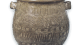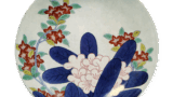 鍋島 青磁 染付 大根文 皿 日本の陶滋鍋島 青磁 染付 大根文 皿 2024.07.18 鍋島 青磁 染付 大根文 皿 高さ3.6cm 口径15.5cm 高台径7.9cm 古鍋島青磁染付の優品。大根を浮文であらわし、葉には青磁釉をかけ、地には墨はじきの染付で紗綾形文をあらわしている。裏面の三方には窓をもうけて唐花風の菊文を配し、余地は青海波で埋め、高台には雷文繋をあらわしている。器形や墨はじきなど鍋島藩窯の特徴の顕著な作品であるが、やはり南川原の作と思われる。高台が少し歪んでいる。