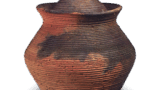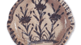 鍋島 染付 鋳地茄子文 皿 日本の陶滋鍋島 染付 鋳地茄子文 皿 2024.07.20 鍋島 染付 鋳地茄子文 皿 高さ3.5cm 口径15.2cm 高台径8.4cm 古鍋島調の染付と銹釉を併用した七寸皿の優作である。鶴とも茄子とも見える文様が器表全面にあらわされているが、これも鍋島ならではの図様といえる。裏面には牡丹文を五方に配した古風な唐草がめぐらされている。