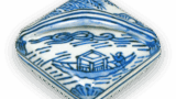鍋島 色絵 扇面 青海波文 皿 日本の陶滋鍋島 色絵 扇面 青海波文 皿 2024.07.20 鍋島 色絵 扇面 青海波文 皿 高さ7.5cm 口径30.7cm 底径16.3cm 扇面を二段に配し、紅葉と萩、薄の秋景をあらわしている。鍋島が誇る純然とした日本的意匠で、地に青海波を墨はじきの白抜きであらわしている.裏面には、典型的な七宝結文が三方にあらわされている.高台にめぐらされた櫛目文はやや長い。