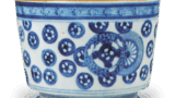 鍋島 青磁 染付 輪繋文 皿 日本の陶滋鍋島 青磁 染付 輪繋文 皿 2024.07.25 鍋島 青磁 染付 輪繋文 皿 高さ5.2cm 口径19.0cm 高台径9.8cm 第12図の「色絵輪繋文三脚皿」と同様の意匠であるが、これは七寸皿であり、青磁と染付であらわしている。盛期鍋島の青磁染付ものでは優れたものの一つで、裏には左右に長くのびた唐草をもつ牡丹文を三方に配し、高台には鋸歯状の蓮弁文がめぐらされている。