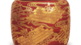 鍋島 色絵 布晒文 皿 日本の陶滋鍋島 色絵 布晒文 皿 2024.08.012024.08.02 鍋島 色絵 布晒文 皿 鍋島 色絵 布晒文 皿 高さ3.2cm 口径11.3cm 高台径6.0cm 岡山美術館 色絵三寸皿の秀作で、青海波の地文に捻花風の紐文様をあらわしているが、そこに洗練された意匠感覚がうかがわれる。裏は白無地。