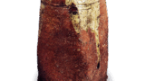 備前 細水指 備前備前 細水指 2014.06.242024.01.24 備前 細水指 Bizen Tall cylindrical water iar高さ18.3cm 口径ll.8cm 底径12.4cm ほぼ筒形の水指で-これも本来掛花生として作られたものでしょう。やや広い蓋が添い、回りに箆目をつけています。一方には灰が降りかかって黒あるいは黄みに変化し、一方は赤く鮮かに焼き締まっています。これも、この種の細水指としては景色の鮮かな優作でしょう。蓋の表に窯印があり、底には窯印が箆彫りされています。